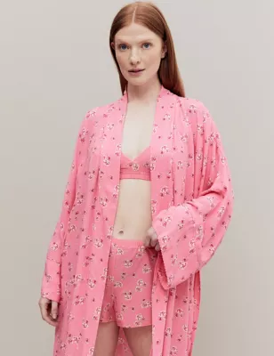Floral Print Long Kimono Robe