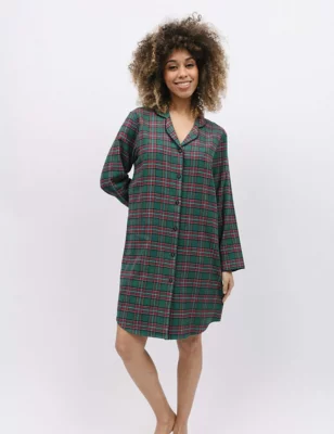 Pure Cotton Checked Short Nightshirt