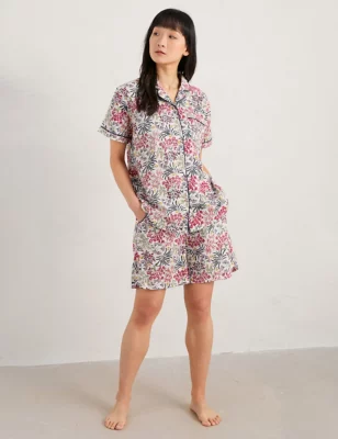 Pure Cotton Floral Scallop Trim Shortie Set