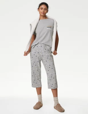 Cotton Rich Polka Dot Cropped Pyjama Set