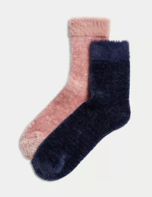 2pk Recycled Velvet Cosy Socks