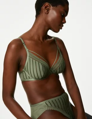 Mesh Striped Wired Plunge Bra