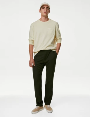 Regular Fit Single Pleat Trousers With Active Waist