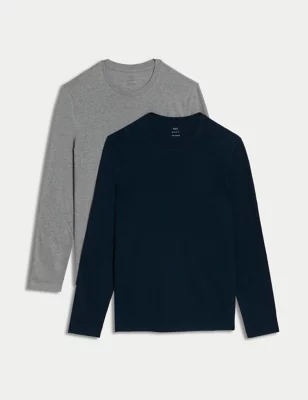 2pk Pure Cotton Long Sleeve T-Shirts