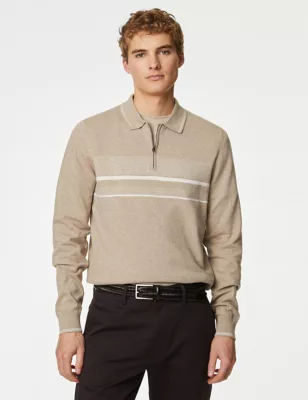 Cotton Rich Striped Knitted Polo Shirt