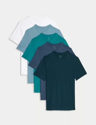 5pk Pure Cotton Crew Neck T-Shirts