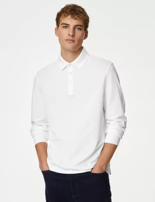 Pure Cotton Long Sleeve Polo Shirt