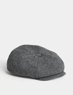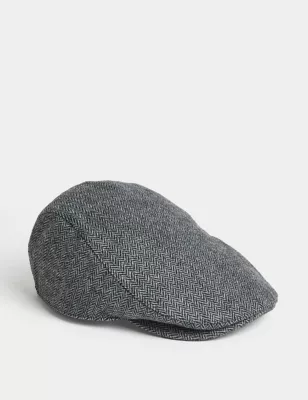 Wool Blend Herringbone Flat Cap With Stormwear™
