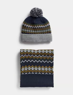 Fair Isle Knitted Hat And Scarf Set