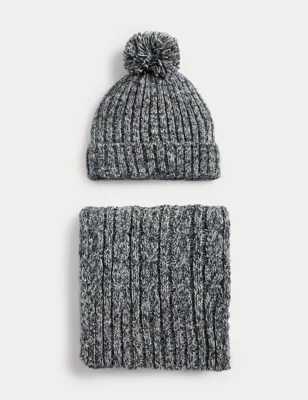 Cotton Rich Textured Hat & Scarf Set