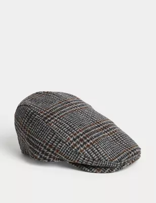 Pure Wool Checked Flat Cap With Stormwear™
