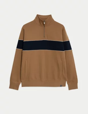 Pure Cotton Colour Block Half Zip Sweatshirt