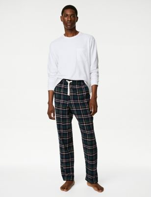Brushed Cotton Checked Loungewear Bottoms