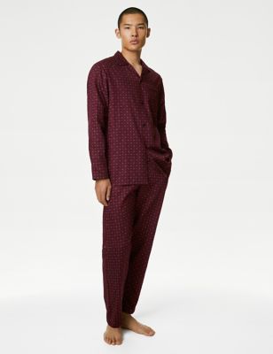 Longer Length Brushed Cotton Checked Pyjama Set