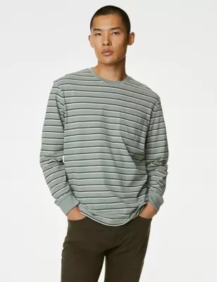Pure Cotton Striped Long Sleeve T-Shirt