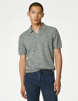 Cotton Rich Open Neck Knitted Polo Shirt