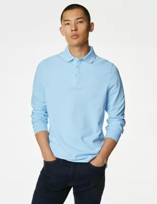 Pure Cotton Long Sleeve Polo Shirt