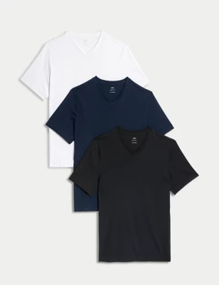 3pk Pure Cotton V-Neck T-Shirts