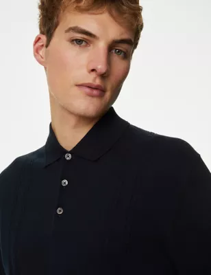 Cotton Rich Cable Knit Polo Shirt