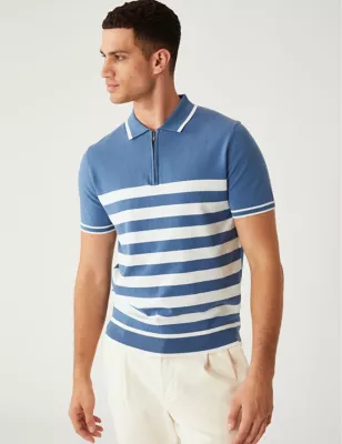 Pure Cotton Striped Half Zip Polo Shirt
