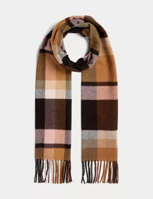 Woven Checked Tassel Scarf