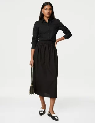 Pure Cotton Square Neck Shirred Blouse