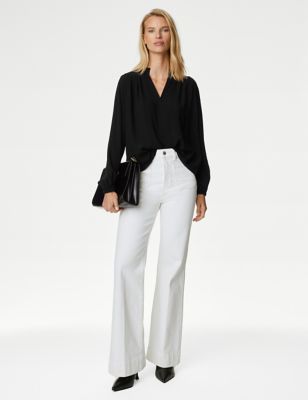 Satin V-Neck Popover Blouse