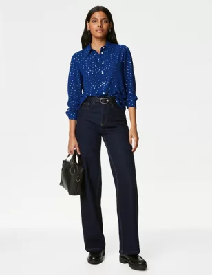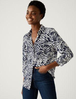 Foil Print Collared Button Through Shirt