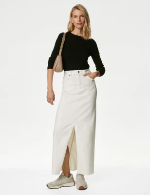 Denim Split Front Maxi Skirt