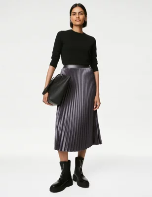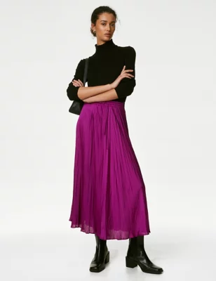 Satin Pleated Midaxi Skirt