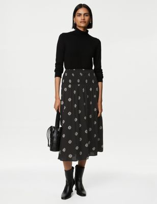 Printed Pleated Midaxi Skirt