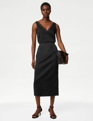 Satin Split Back Midaxi Column Skirt