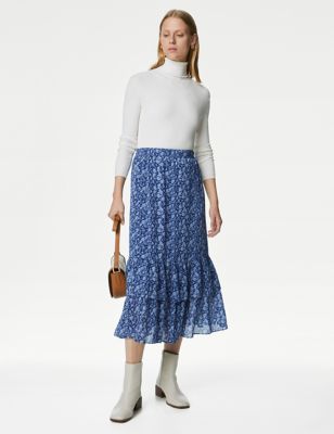 Printed Ruffle Midi Tiered Skirt