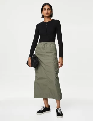 Pure Cotton Maxi Cargo Skirt
