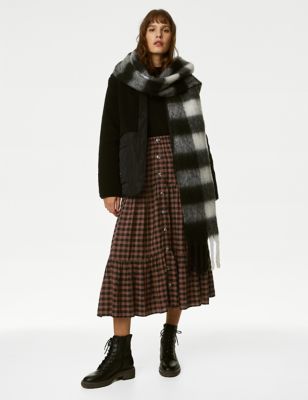 Modal Rich Checked Tiered Midi Skirt