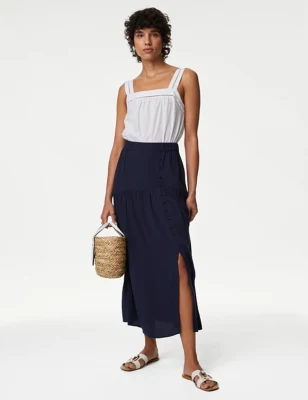Pure Cotton Midaxi A-Line Skirt