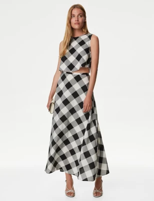 Checked Maxi A-Line Skirt