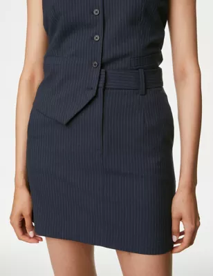Pinstriped Mini A-Line Tailored Skirt
