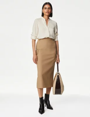 Split Back Midi Utility Cargo Skirt