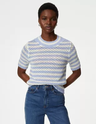 Cotton Rich Textured Striped Knitted Top