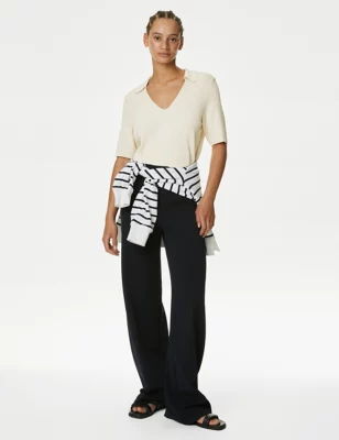Pure Merino Wool Collared Knitted Top