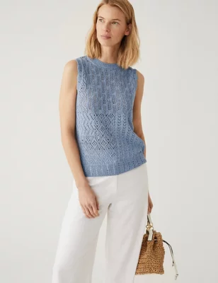 Cotton Rich Textured Knitted Vest