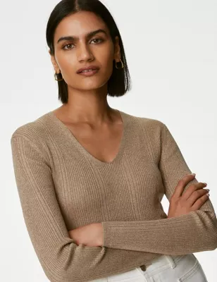 Sparkly Ribbed V-Neck Knitted Top