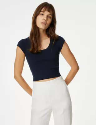 Ribbed Scoop Neck Cropped Top