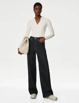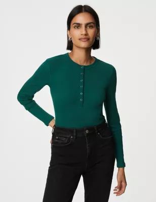 Cotton Rich Ribbed Henley Top